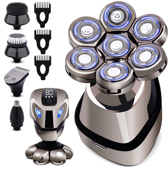 5 REPLACEABLE BLADES - The 7D head shaver kit comes with 5 versatile, replaceable blades designed for shaving, haircutting, sideburn trimming, facial cleansing, and nose hair trimming. Meet all your grooming needs with one tool.